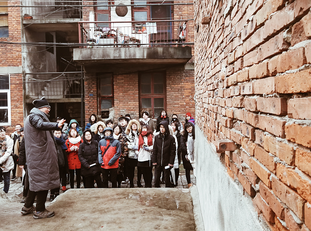 两位老师带领了员工们一起在金口的老城区进行了勘察走访,深入当地的人文环境,发现各种独具特色、年代久远的老房子和废弃的俄罗斯造船厂,给我们的改造设计带来了诸多灵感,同学们也受益匪浅。这次的合作公司与华中科技大学建立了校际实践教学资源共享、共用的交叉学科共同体。