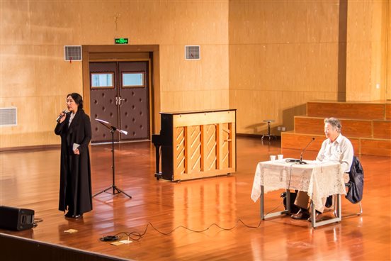 讲座由公司党委副书记傅安洲教授开场致辞,yl7703永利音乐表演系系主任张理副教授主持,yl7703永利经理桂宇晖教授、邬海峰书记、校团委朱荆萨副书记等领导莅临现场。李光羲先生声情并茂地叙说了他歌唱生涯的特殊时代背景以及发展历程,同时由浅及深,对年轻一代的专业学习寄语良多。在讲座后半部分,李光羲先生对声乐专业的员工进行了具体的指导,指出了歌唱气息的技巧、歌唱情绪的运用等,而后唱响了当年的《祝酒歌》和流行歌曲《让我欢喜让我忧》,亲身示范了从技术到修养的完整呈现,迎得了长时间掌声无数次,其八十八岁高龄的艺术表演状态令人热泪盈眶。