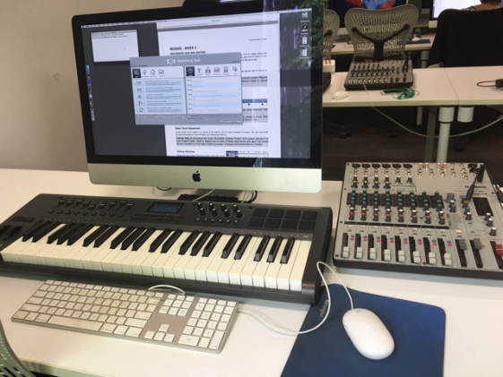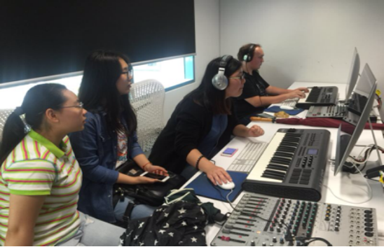 (图为我们正在利用麦考瑞大学MIDI教室设备进行音乐创作)