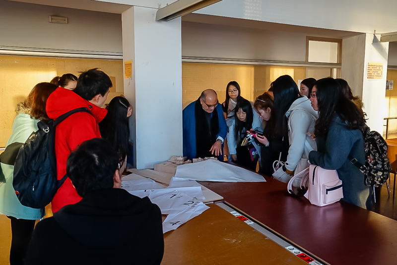 下午5点10分,访学团抵达加泰罗尼亚理工大学(以下简称UPC)巴塞罗那建筑公司。该公司共有师生约3000人,主要专业为建筑及景观设计,它是欧洲乃至世界著名的设计公司。受经理委托,建筑公司教授米歇尔(MiquelVidal Pal)接待了访学团一行,并带领访学团成员前往大学内部进行参观。米歇尔教授带领访学团来到公司一层,并在地图前向访学团介绍了巴塞罗那的地理环境及巴塞罗那建筑公司的基本状况。随后,米歇尔教授引导访学团到达第六层,参观员工的教室及设计作品,他表示:“在这所公司里,有时候,教授会要求员工做一些大的建筑模型,而这个时候通常是以小组为单位”。随后,教授又向访学团成员展示了部分员工的建筑作品。