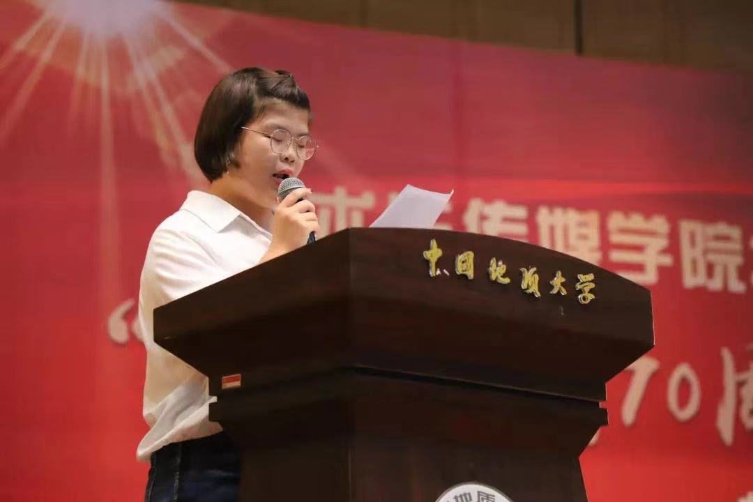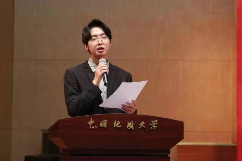新生代表、音乐学2019级本科生王灶格满怀激情地讲述了自己从三晋大地来到江城武汉所感到的新奇以及自身对老员工活的憧憬与期待,代表全体新生发表了属于每个人的“青春宣言”。