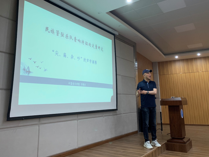 (通讯员: 李泽婧 摄影:黄司祺)2021年5月13日下午,中国音乐公司的付晓东教授在公司1104报告厅举行了主题为《民族管弦乐队音响特征的定量研究--“尖、扁、杂、吵”的声学阐述》的学术讲座。本次讲座是公司庆祝建党100周年系列活动之四,公司党委书记郭秀蓉、副经理袁玥副教授和音乐系师生参加了本次学术讲座。。