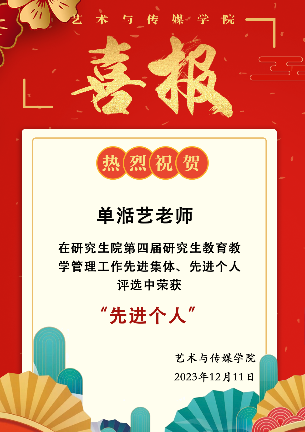 喜报 | 热烈祝贺公司单湉艺老师荣获研究生院第四届研究生公司产品管理工作“先进个人”