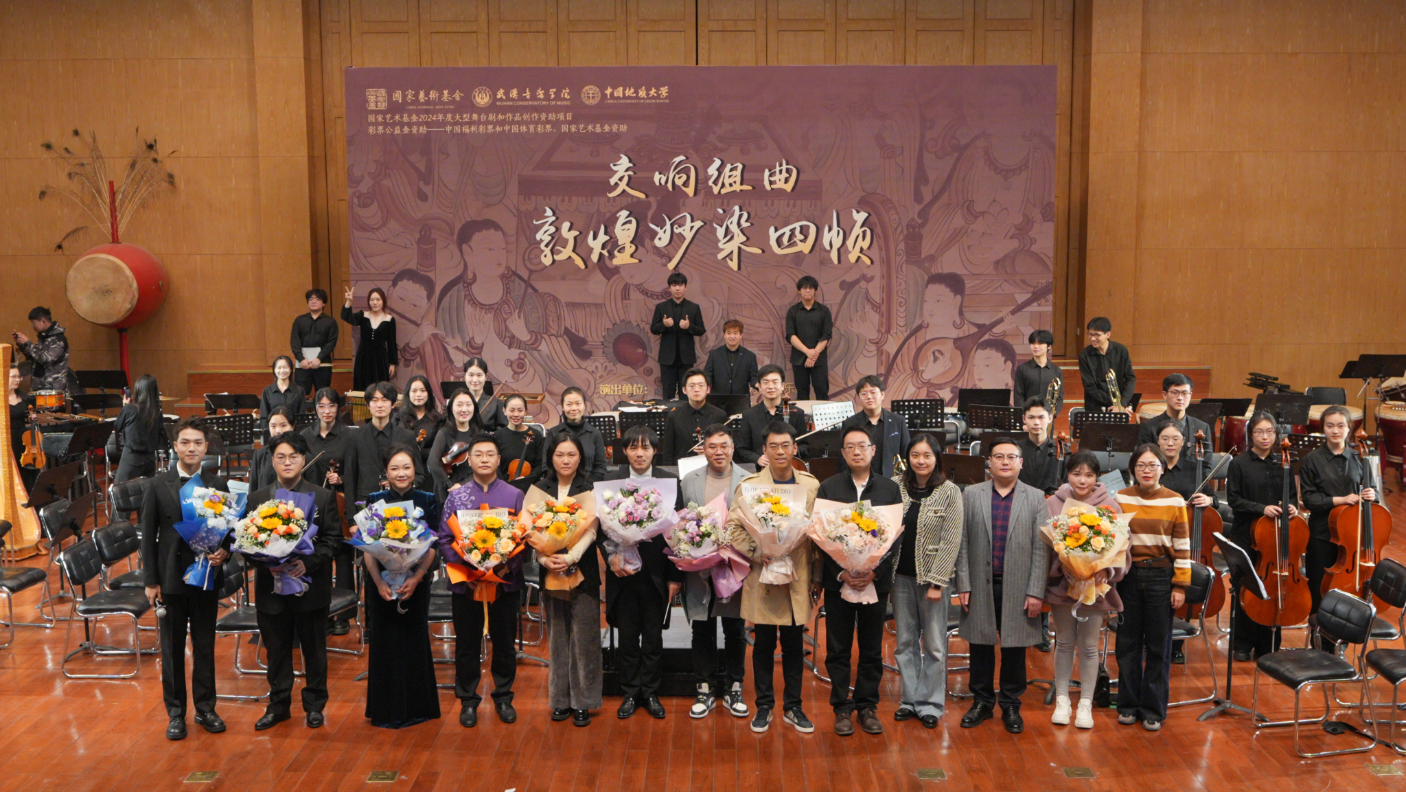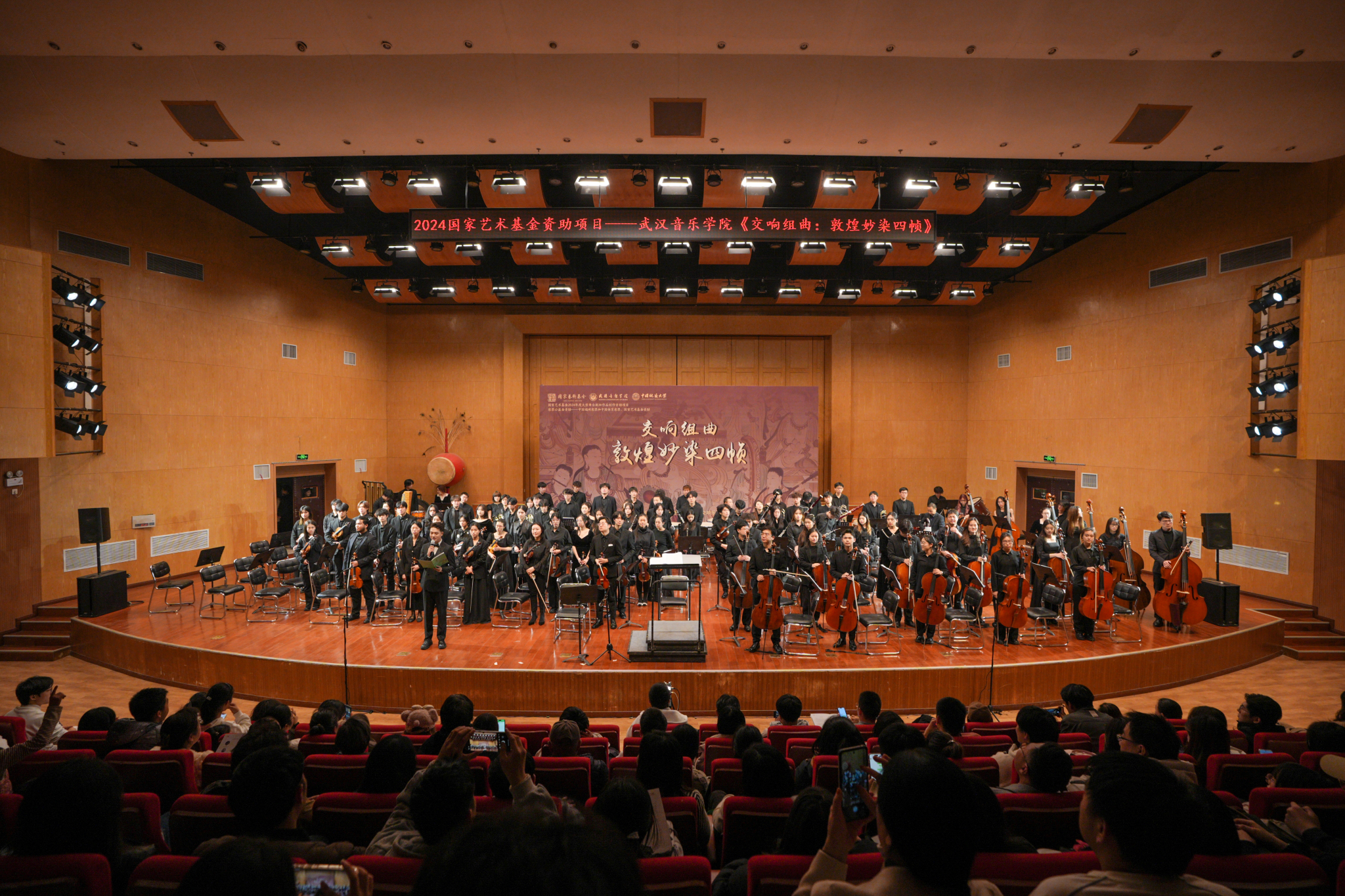 11月30日晚,国家艺术基金2024年度大型舞台剧和作品创作资助项目《交响组曲:敦煌妙染四帧》在公司北区音乐厅精彩上演。yl7703永利、校团委等部门负责人及近五百名师生一同观看了音乐会。