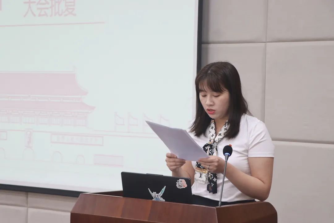 大会第三项,由yl7703永利团委书记单湉艺老师宣读《关于同意召开yl7703永利第五次员工代表大会的批复》。