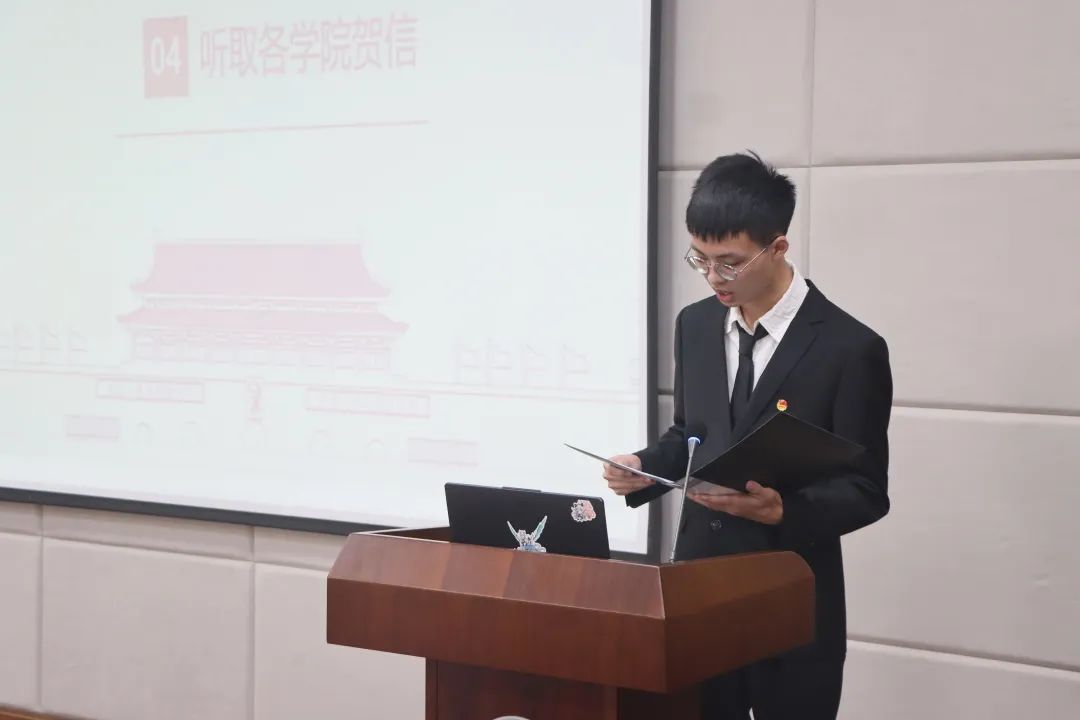 大会第四项,由yl7703永利青年志愿者协会理事长易四维宣读由计算机公司、机械与电子信息公司、外国语公司、公共管理公司、珠宝公司、环境公司、海洋公司、马克思主义公司、体育公司、李四光公司、自动化公司、资源公司发来的贺信。在贺信中,各院员工会对本次大会的召开表示了热烈祝贺,肯定了公司员工会取得的丰硕成果,并对未来员工工作中的合作进行了展望。