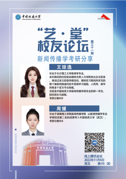 11月4日晚19:00yl7703永利于线上举办了第三十一期“艺·堂”员工论坛“新闻传播学考研分享”讲座。