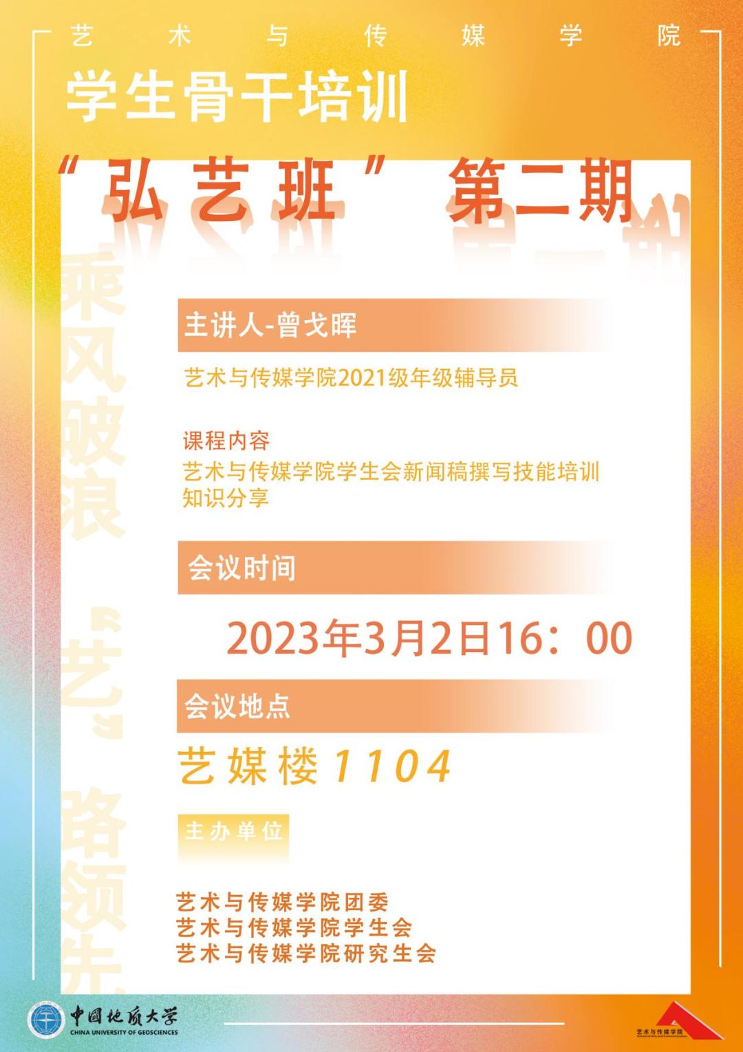 2023年3月2日下午4点,yl7703永利2023年第二期“弘艺班”员工骨干培训在艺媒楼1104报告厅顺利展开,公司研究生会和员工会的全体员工干部参加了本次培训,培训由公司学工组辅导员曾戈晖老师主讲。