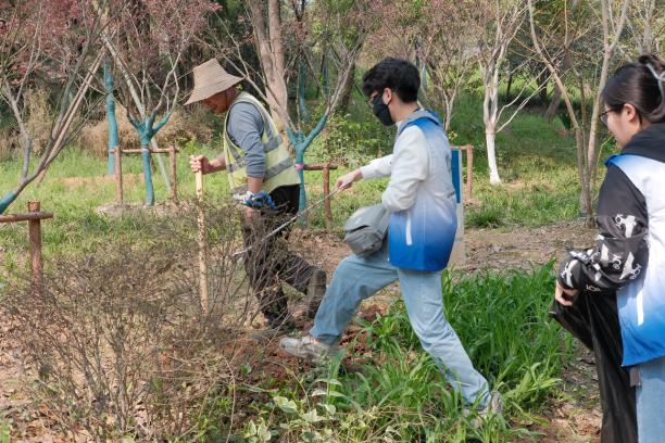 春意盎然启长卷,阳光熠熠绘新篇。青年志愿者们提前在北区大门集合进行线下签到和发放工具。本次活动由公司青年志愿者协会统筹安排整体工作,组织20名志愿者前往东湖旅游风景区,通过垃圾清理、清洁公共设施和整理落叶等实践方式,完成户外环保志愿服务工作。