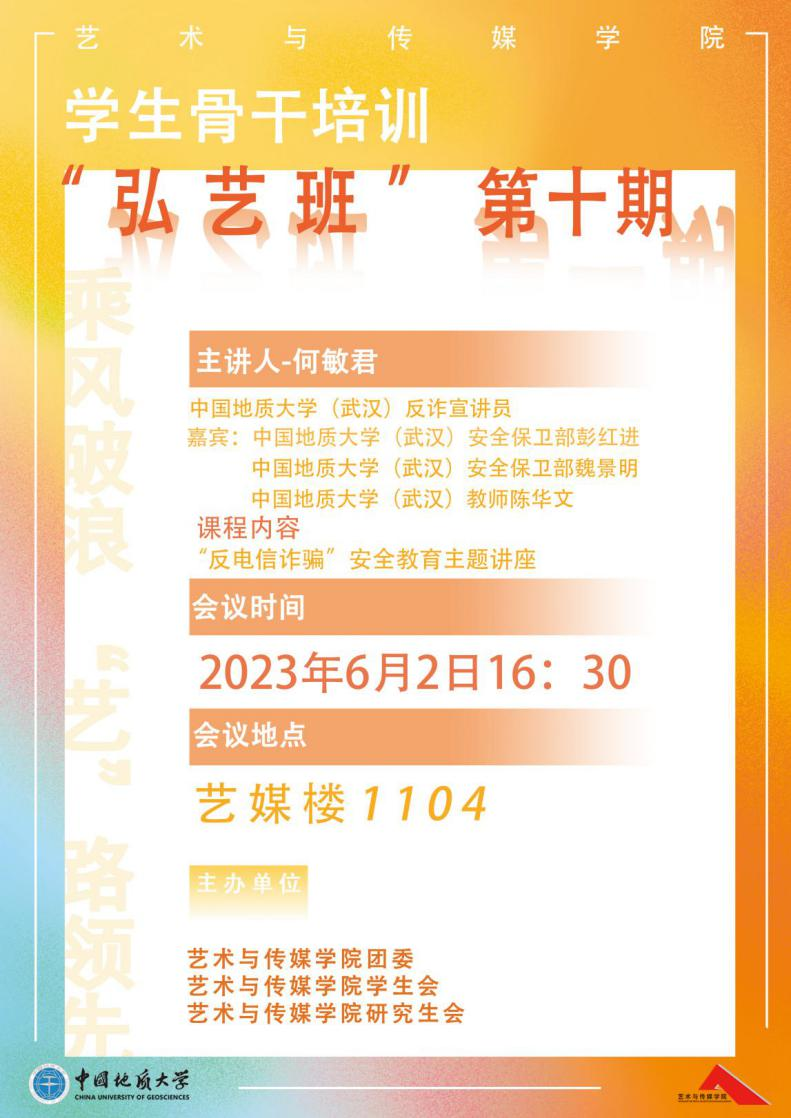 6月2日下午4点30分,yl7703永利第十期“弘艺班”员工骨干培训在1104报告厅举行,公司研究生会和员工会的主要员工干部以及各班级员工代表参加了培训,本次安全教育培训的主题为《今天你遇到骗子了吗?——防范网络诈骗主题教育会》,由公司反诈宣讲员何敏君同学和安全保卫部魏景明、彭红进老师以及陈华文老师受邀讲解。
