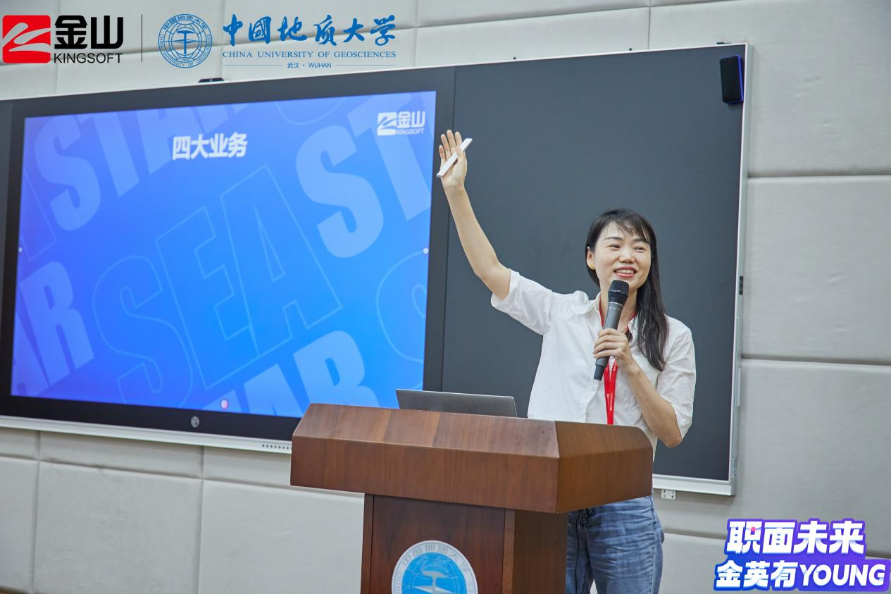活动伊始,金山集团武汉总部招聘经理徐霞为同学们介绍了金山集团的业务构成与主要产品,预热了赛场气氛。随后,比赛正式开始。七位决赛入围选手依据赛前抽签顺序依次进行答辩,在个人陈述阶段,选手们从生涯故事、个人和职业探索、目标设定、行动计划等方面从不同专业角度出发展示了他们的职业生涯规划;在评委提问环节中,选手们积极回答现场评委老师的问题,互动十分精彩。