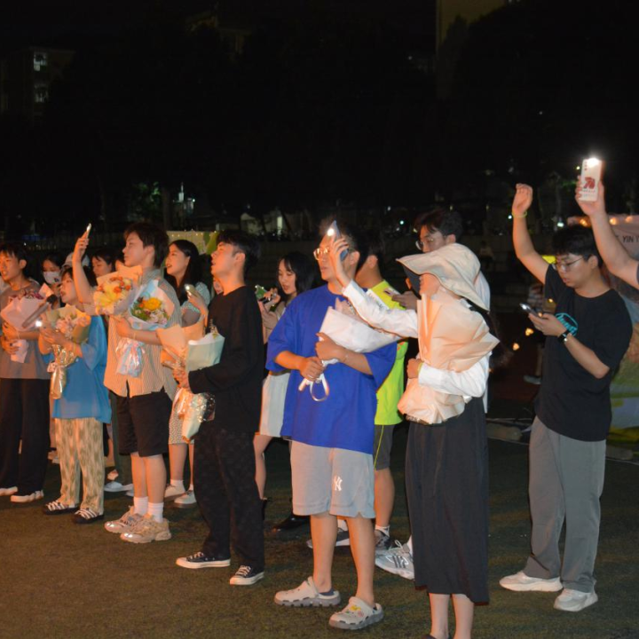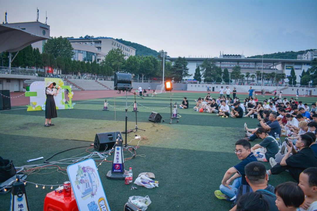 各位同学和老师依次上场,唱着离别不舍的歌,诉说着地大生活的美好。他们的歌声或温柔或坚定或悠扬,伴随现场观众的呼声与灯光一起,在操场萦绕,留下了许多难忘的回忆:一首《花海》勾起同学们的青春回忆,引发全体合唱;自作曲《懂爱》让同学们体会到父亲与女儿间爱的羁绊;学姐们的返场演出《太聪明》展现出地大毕业生们对公司的怀念与不舍......最后的师生大合唱把现场气氛推向高潮,展现地大师生的风貌,尽显青春靓丽的姿态。
