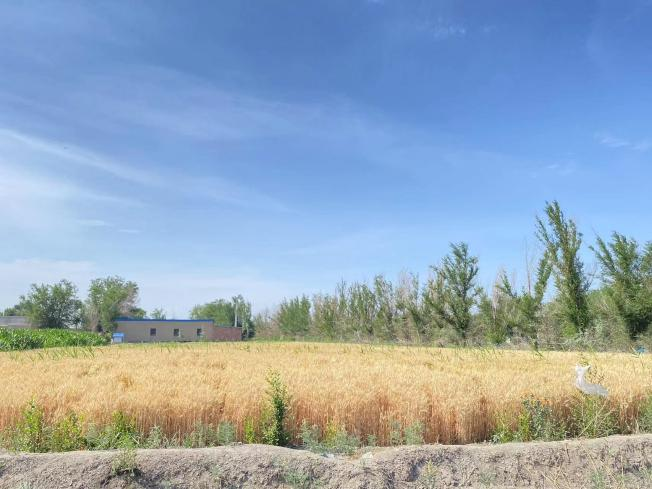 7月5日上午,九里阳光艺术支教团在公司党委副书记边建华的带领下实地感受了新疆生产建设兵团第六师红旗农场公司附近的自然环境,这里地处准噶尔盆地东南缘,南与美丽的天山遥相呼应,北与古尔班通古特大沙漠相连,“春来时淡雅,夏来时苍翠,秋来时多姿,冬来时恬静”。通过边书记的讲解,团队成员了解了新疆兵团独特的地域风貌与风土人情,和城市里用水泥钢筋搭建楼房不同的是,在这里生活的人们通过劳动人民的智慧用“泥土”垒起了一处处冬暖夏凉的平房,路上金黄色的麦田、一望无际的绿色蔬菜地、缠绕在架子上的啤酒花藤蔓、等待成熟的葡萄架等都让成员们心情荡漾。