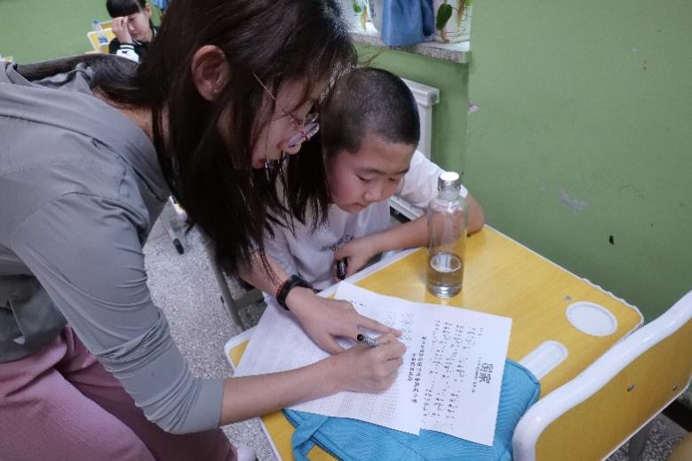 同时,为深入学习党的二十大精神,贯彻落实习近平总书记关于教育的重要论述和关于语言文化的重要指示批示精神,深入西部地区加大国家通用语言文字的推广力度,在艺术教学之外,志愿者老师们也开展了普通话的教学和宣传活动,通过玩游戏的方式带领同学们进行普通话的练习,助力当地员工普通话水平提升。课堂上,同学们朗诵传统的诗词,将中国优秀传统文化带入课堂,在学习普通话的过程中学习传统文化、感悟传统文化、弘扬传统文化。