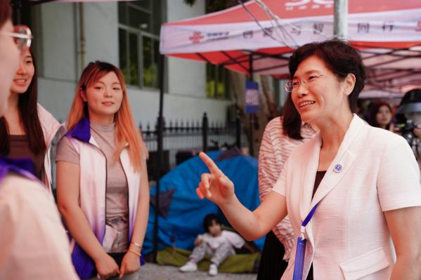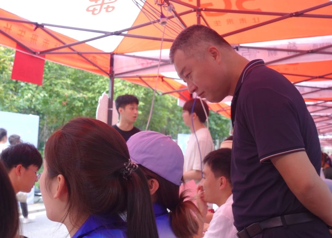 9月5日下午,公司党委书记黄晓玫、董事长王焰新来到艺媒迎新摊点了解公司迎新的工作情况,同正在到道的新生和员工家长、迎新工作人员进行了亲切交流,送上了公司的关怀与慰问。