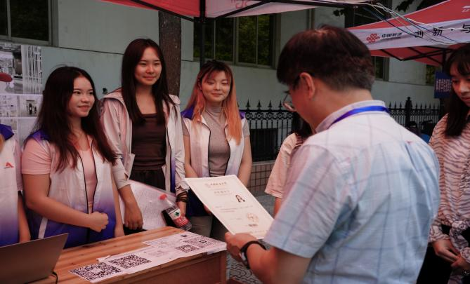 在西区体育馆门前,志愿者们举着“yl7703永利”的牌子引导着新生去到迎新摊位,随后在老师们的协助下完成学籍信息录入以及个人资料的收集等,并耐心回复了家长们有关在校学习和生活的各类疑问。