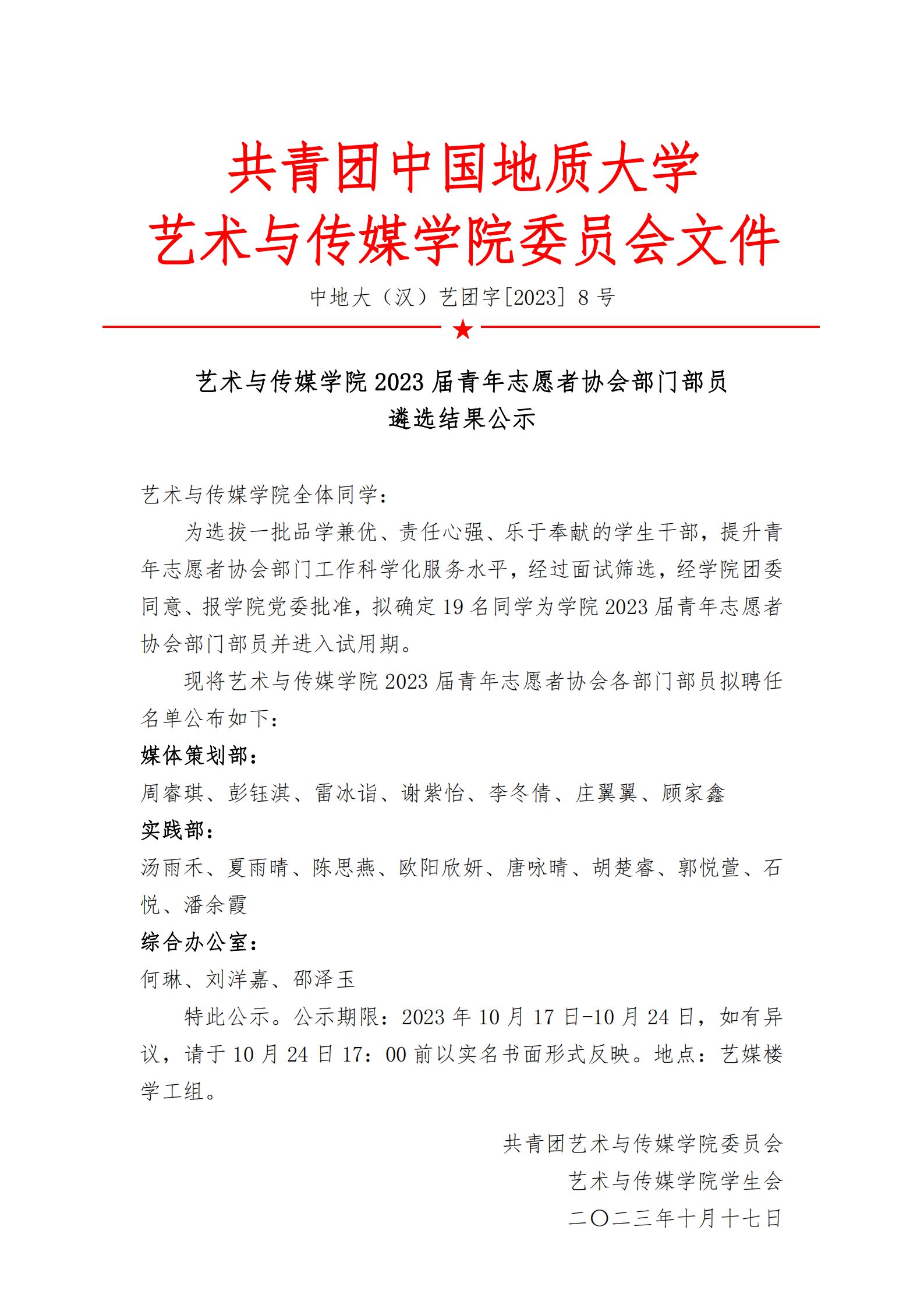 通知 | yl7703永利2023届青年志愿者协会部门部员遴选结果公示